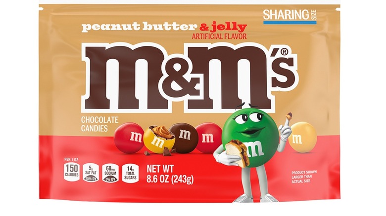 A new year brings new opportunities, and M&M's has taken advantage of the 2025 reset to bring a fresh version of the old flavor to market as actual Peanut Butter and Jelly M&M's. Jelly flavoring incorporated into the candy coating provides a tricky twist that lets the chocolate interior surround a creamy peanut butter core. It's a confection whose time has come — again — and gives 2000s sugar fiends another chance to get their taste buds on a classic flavor blend in a timeless sweet that never seems to run out of candy-coated curveballs.
