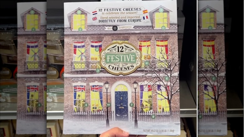Now, adults can eagerly cross off the days leading up to Christmas Day with boozy beverages, chocolate, and even hot sauce advent calendars (via Brew Your Own Batch). But where does one find the perfect advent calendar to kick off the season? The wholesale superstore Costco is certainly a good place to start. In the past, Costco has released a popular wine advent calendar and a German-style beer advent calendar to celebrate the season. And now the store has good news for fans of fancy cheeses. Its 12 Festive Cheese advent calendar is back in stock for the 2022 holiday season. Instagram user @costcobuys recently spotted this cheesy calendar back on store shelves and couldn't wait to share the news with their followers. "Cheese advent calendars are at Costco! This includes 12 festive cheeses imported from Europe and is PERFECT for cheese lovers," they posted on Instagram.