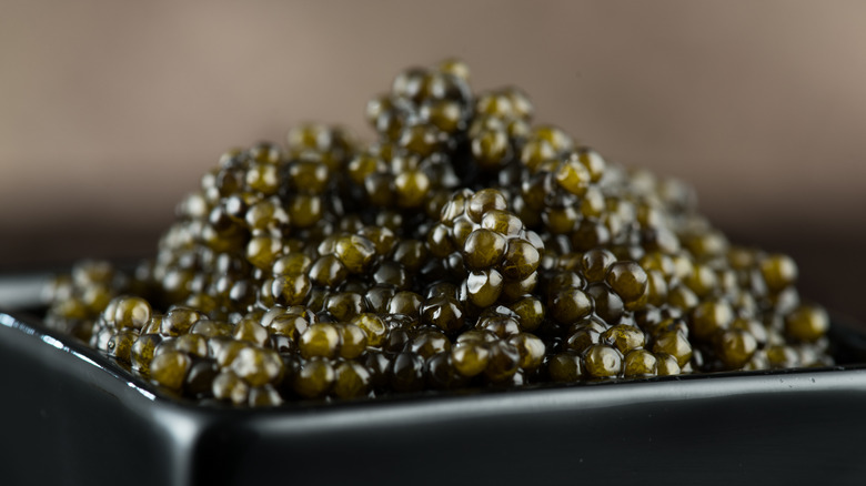 Of all the luxurious things in life, caviar is often considered one of the finest that you can taste. The small pearly delicacy ranks quite high in the pecking order of the most expensive foods in the world. Not all caviars are created equal — as of 2020, the cheapest caviar cost around $1 an ounce and came from tobiko, lumpfish, and capelin, according to Caviar Star, while the most expensive variety came from the rare albino beluga sturgeon. On Amazon, Marky's Premium Almas Osetra Sturgeon Caviar currently carries a hefty price tag of over $480 per ounce.