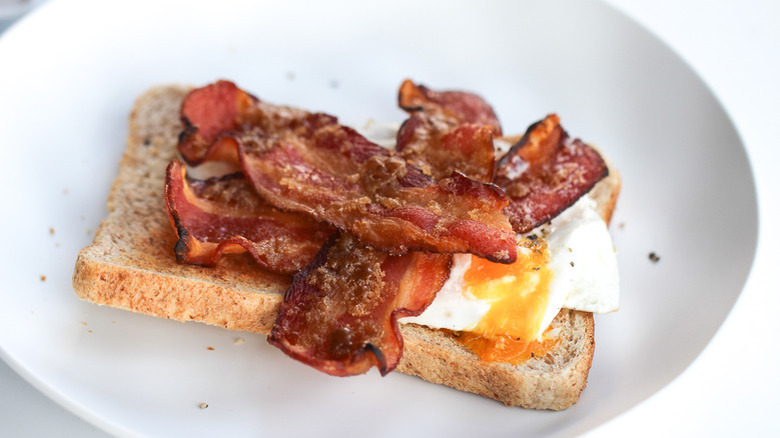 Long before people started adding bacon to cookies, milkshakes, and chocolate bars, many of us already had an inkling that this salty substance works well with sweet flavors. After all, who hasn't poured syrup all over their pancakes only to have a side of bacon wind up in a puddle of the stuff? For a similar, if less-messy flavor experience, you can also bake your bacon with a sprinkling of brown sugar. Once it's cooked, you can keep your brown sugar bacon in the freezer to have on hand whenever you'd like to add some salty/sweet bacony goodness to BLTs, burgers, salads, and, yes, milkshakes.