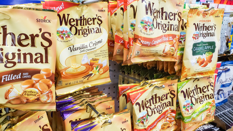 Much like any old-school candy that grandparents seem to love, the story of Werther's Candy begins way back during the early 1900s. As Werther's tells us, confectioner Gustav Nebel created his "butter candy," the basis for what would become the company's famous caramels, in the German town of Werther in 1909. August Storck, the owner of the Werther's brand, later began selling his sweet wares in the United States in 1977, and released the classic Werther's Originals a few years later in the 1980s (via Confectionary News). From there, Werther's has installed itself as a classic and delicious candy in the hearts of many Americans, with 3.74 million Americans enjoying the selection of caramels and chocolates in 2020 alone, according to Statista.