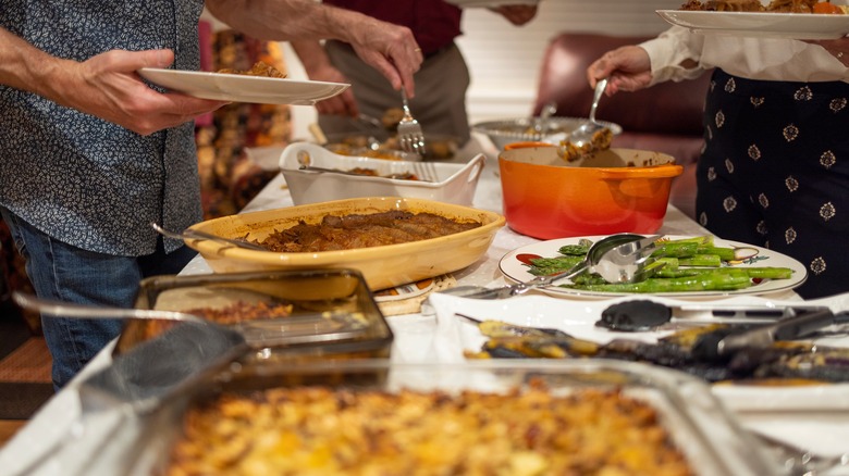 Why have a potluck-style Friendsgiving? Since Friendsgiving dinners aren't shackled to any sort of long-standing traditions, all guests can feel free to introduce their friends to their family's special Thanksgiving dishes, per The Pioneer Woman. A potluck can also allow guests to have fun by shaking up the typical Thanksgiving menu, cooking dishes they normally wouldn't prepare for a more formal, traditional meal.