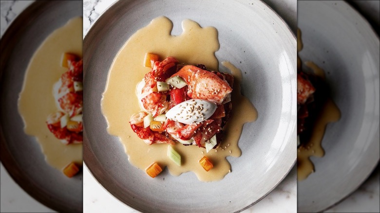 The 2020 menu provides a glimpse of what's to come for guests who reserve a dining room table in 2022 (via Tock). To start, on-brand poached cranberries and candied walnuts garnish a celery root salad and a Provençal pumpkin soup was topped with juniper marshmallows. Kinship's famed Maine lobster French toast and a cheddar and sage agnolotti are on the menu next to the traditional-leaning herb-roasted turkey. That last meal comes complete with thyme bread pudding, potato puree, green beans amandine, cranberry bavarois, and Parker House rolls. For dessert, apple confit, brown butter ice cream, and dark chocolate pecan pie all may make an appearance, a showing that left Yelp reviewers praising the restaurant's homegrown atmosphere and delivery.