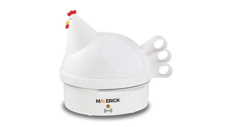 Shaped like a chicken, the Maverick Henrietta hen egg cooker isn't just a fun gadget for your kitchen countertop – it's also highly functional, making up to seven perfectly cooked soft or hard-boiled eggs at once. Alternatively, the appliance can be used to poach up to four eggs at a time. To cook your eggs, simply pierce the egg shells, fill the device with water, and listen for the "chirping" sound. And after all is said and done, Henrietta can be disassembled for easy cleaning — the cooking rack, poaching tray, and lid are dishwasher-safe (via Amazon).