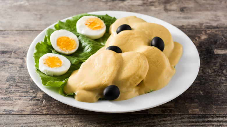 Machu Travel Peru reports that there are more than 4,000 potato varieties in Peru, and they're locally called "papas." Some of the most famous varieties include papa blanca (white and firm), papa amarillo (yellow, soft, and mushy), and papa rosada (pinkish with a white interior). And while there are several delicious dishes that can be prepared with these potatoes, The Culture Trip reveals that there's a classic Peruvian appetizer everyone should try at least once. It's called papa a la huancaína, consisting of boiled potatoes that are usually served in a creamy and slightly spicy cheese sauce.
