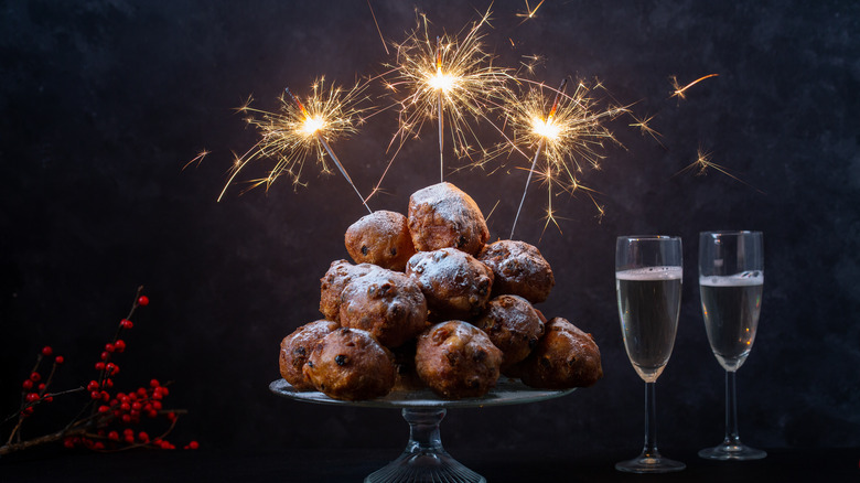 You may not have heard of oliebollen, but on New Year's Eve, this deep-fried oil ball delicacy is devoured at gatherings and parties across the Netherlands, according to Dutch Review. A doughy, oily snack food that is served warm, oliebollen is typically topped with powdered sugar, raisins, currants, cinnamon and chunks of apple. It may also be dipped in caramel or chocolate sauce. It's traditionally paired with Champagne and enjoyed while watching fireworks or attending a bonfire made out of discarded Christmas trees (via Paste magazine).