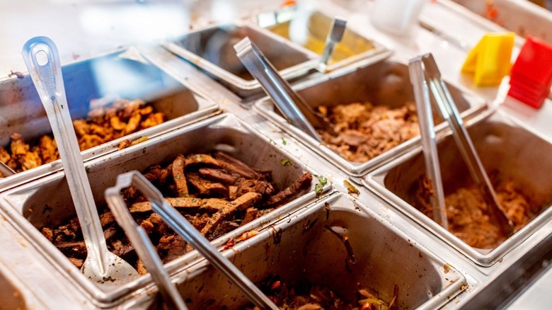 Meats at both Moe's Southwest Grill and Chipotle are well seasoned, offering citrusy, peppery, tomato-stewed notes without being overwhelming. At Chipotle, the steak is always a surefire bet, offering well-done sirloin with a smoky, charred finish. The chicken can be a little bit gristly and greasy, though, as Chipotle uses chicken thigh and darker meats. If you're into cleaner-tasting chicken, it's not the best and can taste like pure fat if you get a bad piece. Chipotle makes up for it with its savory barbacoa, which could stand on its own as a restaurant dish. It also has a rotating selection of grilled steaks, which on the day we went in was a delicious garlic guajillo.