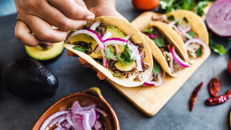 According to Twisted Taco, the popularity of the food exploded after Mexican immigrants brought tacos to the US in the early 1900s. In the 1940s the hard shell, or crunchy taco, was invented and a decade later Taco Bell introduced the pre-made crunchy shells to the masses. If you have a hankering for this authentic Mexican street food, you may be surprised at how simple it is to make. Street tacos are served on a warm corn tortilla with your meat of choice, onions, cilantro, and lime, notes The Lemon Bowl. Of course, you can hit up your local taqueria or food truck, but it's always fun to whip up your own at home. Before you get ready to host your next Taco Tuesday, make sure you don't ruin them by making an often overlooked mistake.