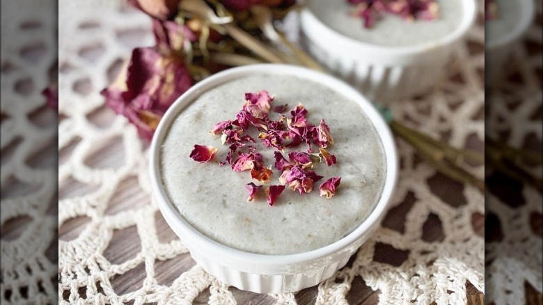 Though it's called a pudding, one Instagrammer reported that it's more of a "cross between a jelly and a cheesecake." According to the British Food History blog, it might be friendlier to modern palates with the addition of whipped cream — they also suggest elderflower as a flavoring, though we think pandan or ube might be a fun twist on traditional Irish moss pudding too. It's a blank canvas for flavor and could be a tasty new addition to your St. Patrick's Day celebration.