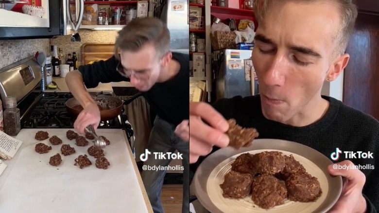 TikTok user @bdylanhollis, whose real name is B. Dylan Hollis, is most known for his recreation of vintage recipes from the Great Depression to the 1980s, per Eater. Simply scrolling through his TikTok page, you can see the variety of recipes he recreates. From bean cake and seafood mousse to Velveeta fudge and Coca-Cola salad, he tackles it all. In fact, most of the vintage recipes that he recreates are just as bad as they sound, like an ice cream coleslaw recipe from 1973 that he describes as tasting "like how a dentist's office smells," per TikTok.
