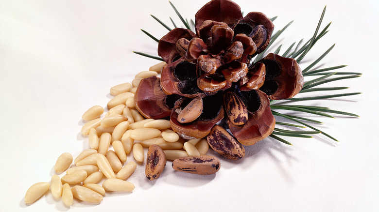 Being quite expensive yet also delicious, you might be tempted to harvest a batch of pignoli yourself. Pine nuts that are safe to eat come from several pine varieties, including Sugar Pine, Western White Pine, Longleaf Pine, Red Pine, and Pitch Pine trees, according to MasterClass. Avoiding alternate types is advisable since some are unknown entities while others, like the Yew pine, are known to be toxic — to people and pets alike.
