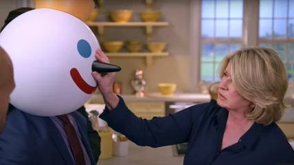 Is there anything Martha Stewart can't do? The queen of, well, just about everything in modern U.S. culture, Stewart even bounced back from a five-month prison sentence after an insider trading conviction in March 2004 (via CNN). Yet, even before her time in prison, a menacing undercurrent seemed to exist beneath her joyful demeanor — see Ana Gasteyer's late-'90s SNL impression as proof. So perhaps her willingness to go nose-to-nose with (and then break the nose of) the Jack in the Box mascot, in a fantastic 2018 Super Bowl commercial, should have been expected.