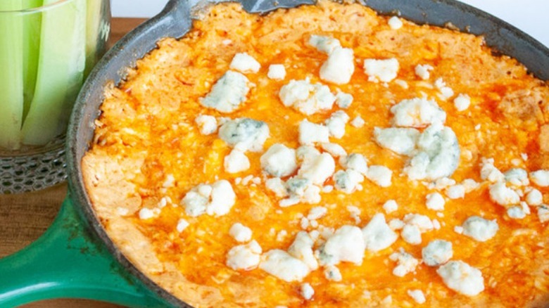 Buffalo wings are famed as a football-watching food, so much so that they're often hailed as the official snack of Super Bowl Sunday. They can be kind of a hassle to make, though, and ordering takeout can cost big bucks if you're feeding a crowd. An easier way to get all of those great Buffalo wing flavors? Making Buffalo chicken dip. The chicken, blue cheese, and hot sauce are all there, plus some mayonnaise and cream cheese to make them dippable. Add some celery sticks for dunking, and you'll be all set for game day.