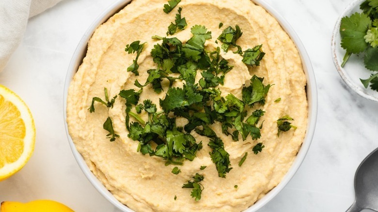 Hummus is perhaps the most popular Middle Eastern dip, if supermarket snack aisles are anything to go by. In fact, so Americanized has hummus become that it's now even available in a wide range of flavors, both savory and sweet. Dessert hummus still tends to be a bit polarizing, though, so for parties and gatherings we recommend sticking with a classic type, like this lemon-flavored dip. It's tasty, tangy, and goes great with raw vegetables and pita triangles.