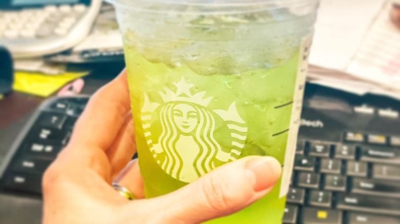 Fruity, sweet, and bright flavors make the gummy bear drink another popular favorite of Starbucks' secret menu connoisseurs. This recipe is another naturally vegan option and is an excellent way to cool down and treat yourself in the spring or summertime. Its base is classic lemonade, which is usually made with water, lemon juice, and sugar. To elevate the lemonade to gummy bear status, add three pumps of raspberry syrup. The raspberry adds richness and depth of flavor that compliments the contrasting bright lemon. Many gummy bear drink fans order this with added strawberry puree, to achieve the ruby red color that dazzles on Instagram.