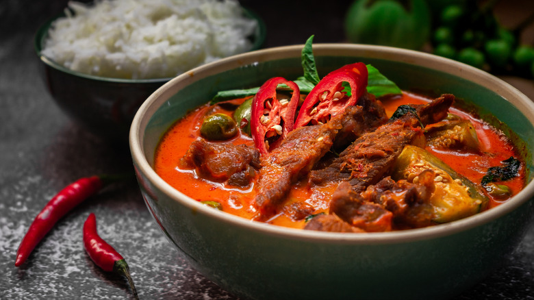 According to a 2022 Research and Markets report, more than 90% of the global rice production and consumption takes place in the Asia-Pacific region. In fact, Thailand is the second biggest exporter of rice in the world, after India, as noted by Statista. As such, it's not surprising that the starchy grain is a staple of Thai cuisine, commonly eaten with curries, soups, and other dishes. Notably, the Thai expression for "to eat" is gin kao, which literally means "eat rice." As so eloquently put by Pailin Chongchitnant in SF Gate, rice is considered "the canvas on which to paint each bite" in the gastronomic culture of Thailand.