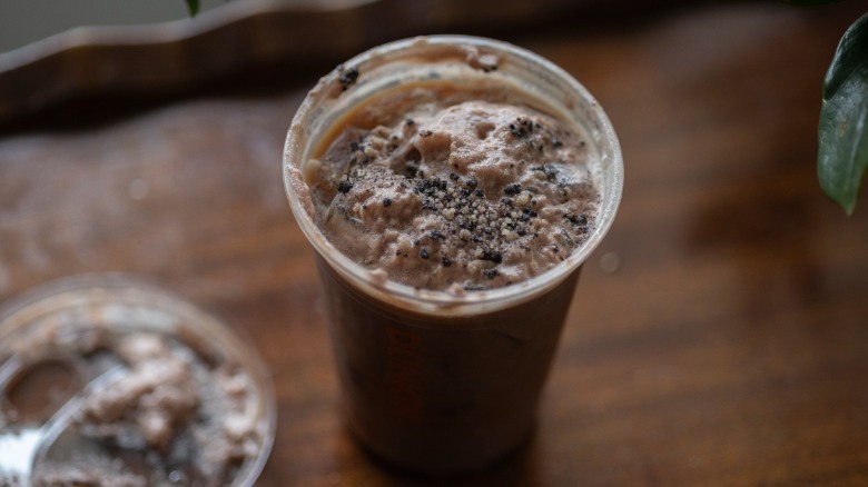Our local Dunkin' didn't offer nitro cold brew, so for this test we pitted the Starbucks chocolate cream cold brew against the new Dunkin' caramel chocolate cold brew. The Dunkin' craft cold brew drink is made with caramel chocolate syrup, then finished off with chocolate cold foam and chocolate caramel sprinkles. The Starbucks cold brew is sweetened with vanilla syrup, and topped off with chocolate malt cold foam.