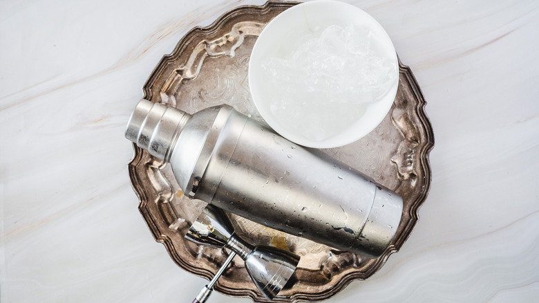 Chill a martini or a coupe glass by placing it in the freezer. Alternatively, if you forgot to do it or have a packed freezer, fill your glass with ice and let it stand for 5 minutes.