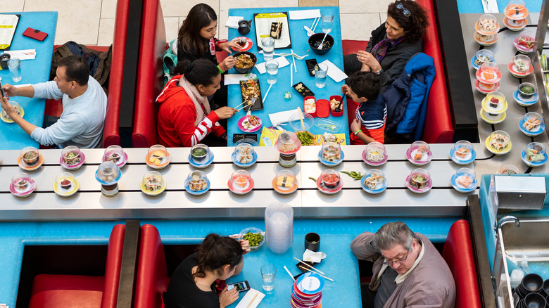 A lot of sushi plates contain two pieces of sushi, and while they might not be huge, it's far better to share them. That way, you can sample a lot more of the menu without having to order excess or pay for everything yourself. If you've never been to this style of restaurant before, then you might like to take someone who has. It can be a little overwhelming to know how it all works at first and what the different dishes are. Eating with someone else at a kaiten-sushi joint promises a casual, quick, and often affordable meal, whether it's with a friend, a colleague, or a loved one.