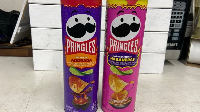 Per Food Business News, States-based customers will soon be able to shop locally for Enchilada Adobada Pringles — featuring flavors of adobo, hot chili peppers, and lime — and Las Meras Meras Habaneras Pringles, which are fiery chips seasoned with roasted habanero chili peppers, lime, and salt. These flavors won't be joining the U.S. lineup permanently; they'll be available at 7-Eleven stores and other non-convenience stores from this May through early 2024.