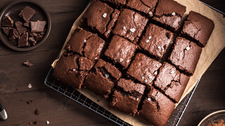 Many professional bakers and home cooks swear by the Ghirardelli boxed brownie mix as a superior choice to scratch-made brownies — and we understand why. These brownies are so great that we bet anyone you feed them to will assume that they're homemade. They strike a remarkable, near-impossible balance of being both chewy and fudgy, with a rich, sophisticated flavor that can be attributed to Ghirardelli's tradition of sourcing high-quality, gourmet chocolate. The skin is crinkly, thin, and almost crispy, while the interior remains dense and doughy, resulting in a brownie that melts in your mouth and ends up getting devoured extremely quickly.