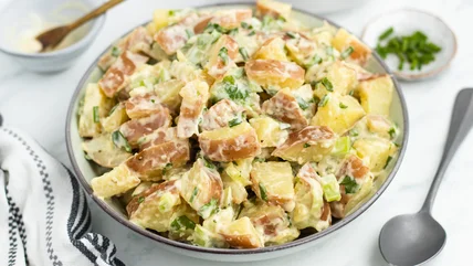 Delicious and aesthetically pleasing, potato salad is a classic side dish that belongs on a list of epic picnic recipes. Recipe creator Catherine Brookes has put together this picture-perfect variation on the standard potato salad that is just what you need at your next lunch in the park.
