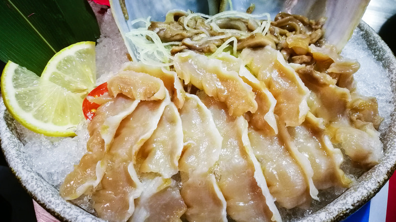 With Seattle being in such proximity to freshly caught geoducks, it's little wonder that this is one of the best places in the U.S. to try the long-necked delicacy. Typically, it's the geoduck's crunchier siphon that's sliced into sashimi while the creature's softer, meatier body is used in cooking. Just like other raw seafood, geoduck sashimi is served with a range of condiments such as soy sauce, wasabi, and ginger.