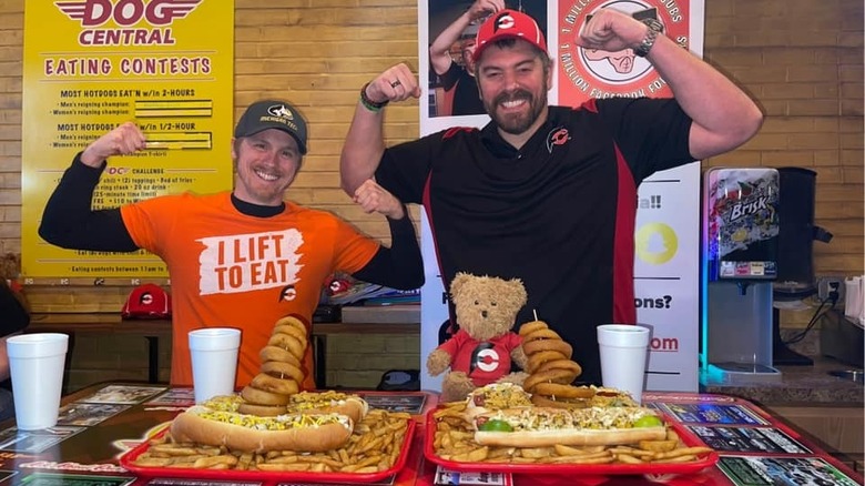 With a shift from burgers to their cookout counterparts, we enter the land of hot dogs through the provision of Dog Central in Mt. Pleasant, Michigan. There are a few ways to win at Dog Central. Contestants can eat the most hot dogs on record in two hours, the most hot dogs on record in 30 minutes, or complete the ghost chili challenge, consisting of three hot dogs smothered in ghost pepper chili. Alternatively, if your goal is to be on the wall of fame, you need only to eat eight hotdogs covered in chili and one topping. So, plenty of ways to succeed! To reach maximum levels of competitor success, contestants can take on the official DC Challenge. Within 25 minutes or less, you must eat three footlong hot dogs covered in chili and two additional toppings of your choice. Additionally, you have to finish off the pile of french fries, a tower of onion rings, and a 20-ounce drink. Are you up for it?