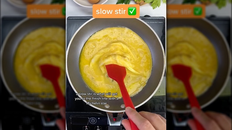 If you want a little more help giving your scrambled eggs that ideal texture, TikTok user TastyOz has a few tips that can help you out, ranging from choosing a medium cooking temperature to maintaining a moderate stirring speed.