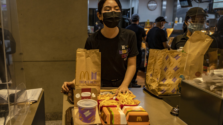 In a recent TikTok, a reviewer rated a few of the chain's most popular offerings. He started with a glowing review of the "McFloat," a beverage that features vanilla soft serve ice cream atop iced coffee, milk tea, or Coke. For those who like to dip their fries or pair a sweet drink with something salty, the McFloat also comes as a combo. He also liked "Shake Shake" Fries, which are served with a packet of cheddar seasoning to add before shaking it all up in a bag. Another favorite was McDo's fried chicken, which he said had moist meat with crispy skin. He seemed less keen on the McDo burger (a hamburger featuring sweet mayo), and the Mushroom Pepper Steak (the franchise's version of a burger steak), which he deemed inferior to Jollibee's version.