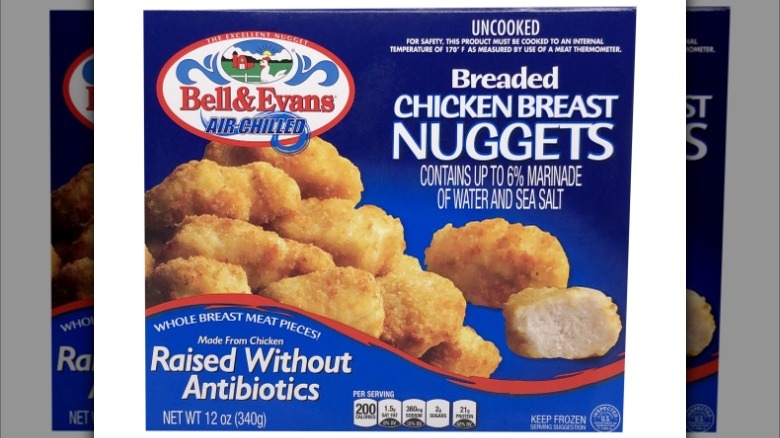According to Bell & Evans, the company's best-selling product is its frozen, breaded chicken breast nuggets. It's no wonder why, as the frozen meal brand's nuggets are made with 100% whole breast meat pieces. "Whole" pieces mean that the nuggets are not made with meat that is mechanically chopped or separated. The result is a delightful texture and a taste more like homestyle nuggets than low-quality, frozen mystery meat-style bites. Bell & Evans is so proud of its chicken nuggets, the company even showcases how they are made in a video on its website and official YouTube channel.