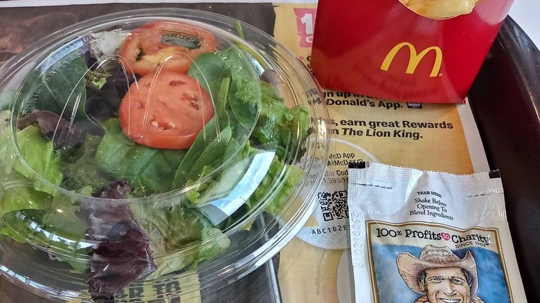 Eating vegan, vegetarian, or simply aiming for fewer calories at McDonald's was a lot easier when you could count on salads being on the menu. But McDonald's announced that it was removing salads back in 2020 when it streamlined its menu to be more efficient during the most intense days of the Covid-19 pandemic. Unfortunately, since the salads came with different types of lettuce than the burgers, it's been easier for the chain to keep salads off the menu. It appears that salads are still on the menu in parts of the U.K., so we have faith that they can return to the U.S., too. If you were a regular McSalad eater, you might want to get started on your letter-writing campaign to get them back.