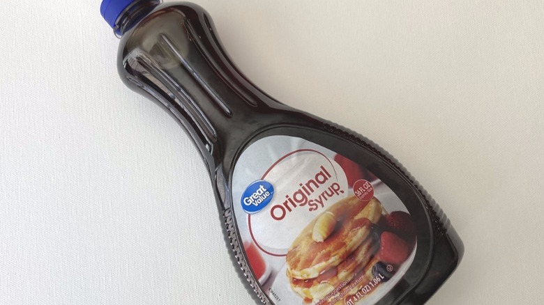 Great Value items are always just shy of hitting the mark they aim for, whether it's an analog of a brand-name cereal or a replacement for a baking mix. With its pancake syrup, the near-miss brand plumbs new depths of disappointment. It's a corn syrup-heavy combination that whispers "maple" as it drizzles from the bottle instead of shouting it out loud. This is likely due to the two forms of corn syrup that make up the bulk of the recipe. Having less than 2% of natural flavoring doesn't do the formula any favors, either.