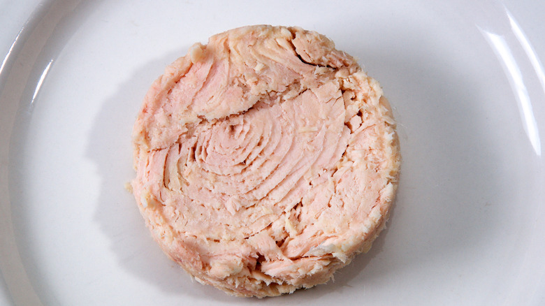 As the name suggests, solid tuna consists of larger, firmer pieces of fish, which are pre-cooked and packed tightly into the can. This is because solid tuna is pulled from the loin of large tuna, such as the enormous white albacore, where it's easier to extract chunkier filet layers that can withstand the precooking process.