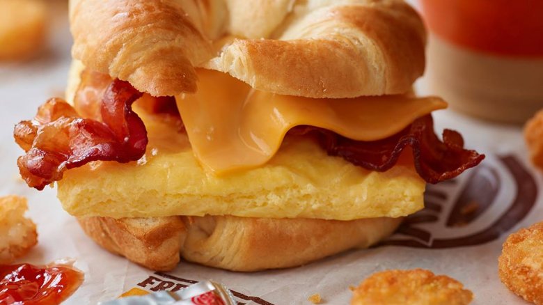 So why haven't Jack in the Box's breakfast offerings enjoyed the same lovin'? As anyone who's gazed blearily down at the contents of their brown paper Jack in the Box bag in the early morning can tell you, the chain's morning selection is just a little lackluster. It's got your standards: English muffin breakfast sandwiches, biscuit sandwiches, croissant sandwiches, hash browns, and mini pancakes. All hearty, familiar, and fast — but unremarkable.