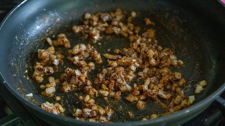 Indian-style butter chicken is a very flavorful dish. In order to develop the right level of depth, you'll begin not in the slow cooker, but by sautéing a variety of aromatics in a skillet.