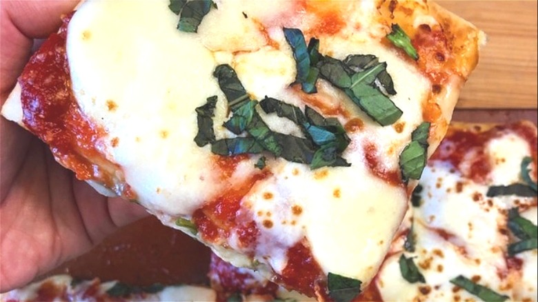Cici's Pizza might seem like a jack-of-all-trades buffet spot, and it is — but don't discredit the flatbreads. By all accounts, they're outperforming the circular pies on the heater by a wide margin. If you like your flatbreads crispy, crackling, and blanketed in cheese, then you'll probably find yourself in the majority. In our opinion, Cici's is the underdog of this list. One Tripadvisor user was "pleasantly surprised" by the thin crust sampling.