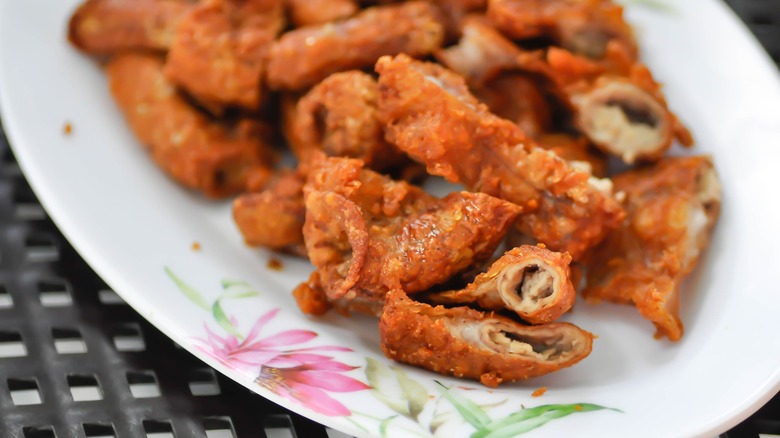 You may not be able to judge a book by the cover; but, sometimes, you really can tell what an ingredient is by its name. As is the case with pork bung, which refers to a pig's large intestine where part of the colon — and, yes, rectum — are. But before you clutch your pearls and decide the ick factor is too much, consider that the intestines of an animal are just a part of the offal meat category, the same as the gourmet, beloved French sweetbreads. And, as such, they have a lot to offer the culinary world.