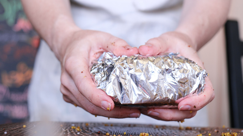 Keeping the tin foil loose is the key element here as it allows the moisture in the biscuits to be released and circulate without the tin foil clinging to the biscuits. For added moisture and flavor, the biscuit tops can be brushed with butter, or they can be lightly spritzed with water. An added bonus to using tin foil is that the biscuits won't require a baking sheet, which makes clean-up easier.