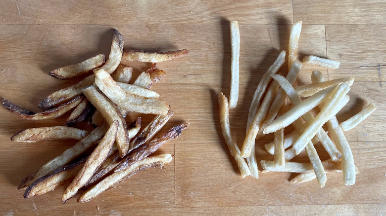While, in theory, both chains make the same food, the french fries each one produces are remarkably different. Different shapes, cuts, seasonings, and frying oils all change the end result. As Five Guys and McDonald's are consistently ranked as having some of the most popular fries, we decided it was time to put them head to head to figure out the differences and to find out which fast food fries reign supreme. We were shocked to find that there was a clear winner.