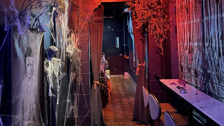 A giant Vecna replica from Stranger Things is in attendance, along with a vampire throne surrounded by severed doll's heads that waits to be sat upon. A mysterious coffin — which may or may not be filled with someone or something — lies eerily in the shadows. Dancing is encouraged under the sparkling lights of disco eyeballs, and throughout the bar are scattered hidden doors behind which guests can find some pretty audacious photo booth installations and selfie opportunities. What better place to bring a group of friends for ample snapshots of what will certainly become a spooky holiday experience for the books? Something to keep in mind, however, is that Wonder Bar reportedly gets rowdy. The music is loud, the dance floor is jumping, and the clientele tends to be a younger crowd. If you're looking for a quiet, smoky bar in which to peacefully sip your themed drinks this Halloween, this may not be the spot for you — if you're seeking a party, look no further.