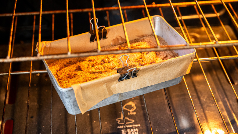 A loaf pan offers an excellent format for this sweet treat, as it makes the bread easy to bake and slice into individual portions. Nevertheless, if you want the portion size to be slightly more controlled, try turning this into muffins. "The bake time will be different, but you could easily make this recipe in muffin tins," Musgrave comments. Indeed, muffins are typically ready in a bit less than half the time it takes to bake a quick bread loaf.