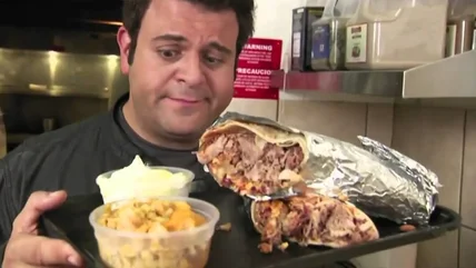 Considering the popularity of burritos, Man v. Food kept finding new places with overstuffed tortillas for Adam Richman to try and defeat. For this challenge, the four-pounder on its own would have been a worthy opponent for Richman, but he also had to take down the Gigante's tag-team partners: a half pound of banana pudding and a half pound of mac n' cheese.