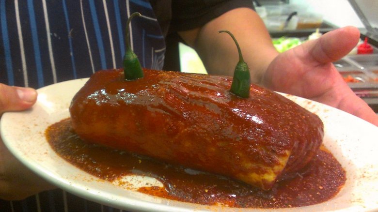 Once you've agreed to those worrisome terms, you must commence your challenge by chomping into the serrano chili "devil horns" of the burrito, and clean your plate within 10 minutes. Oh, and you can only have water. No milk. No bread. Nothing. Somehow, shockingly, the record for finishing a Diablo stands at 3 minutes, 23.8 seconds (as of January 2019). The sheer size of the burrito alone has us speechless at that feat, let alone the spice level.