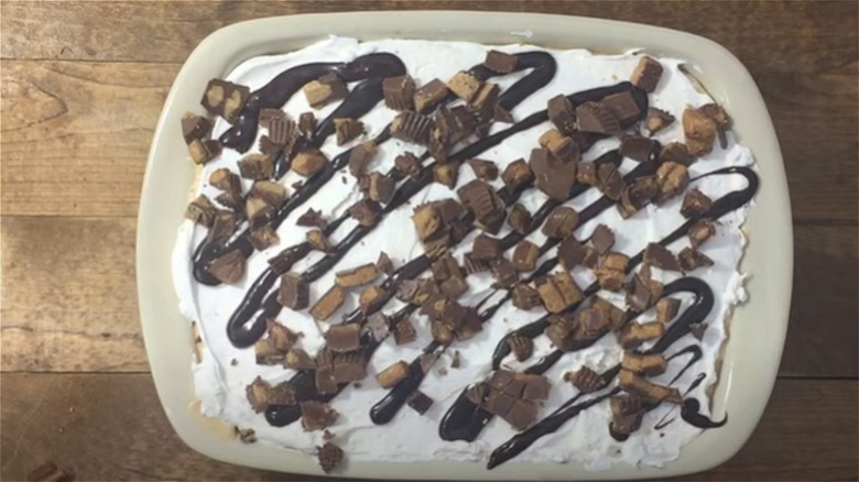 These rich toppings work well for most chocolate-adjacent cake flavors, but what about when you want to bite into a dessert that's a bit lighter? White or vanilla cakes are great for when you want to incorporate mouthfuls of fruity tartness, and you can add ingredients like jams, homemade strawberry sauce, or even a dash of citrus juice if you've got key lime on the brain. Stirring some instant pudding into your condensed milk topping is another easy way to add some creative flavors to your poke cake. Letting it soak in the fridge overnight will give you the best-tasting results — provided you can wait that long.
