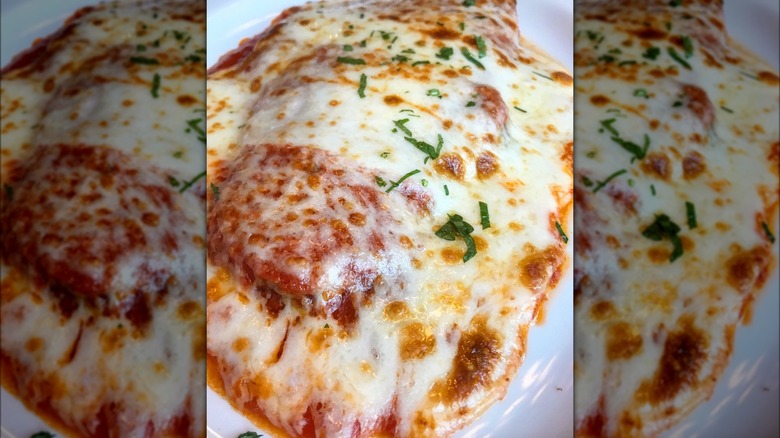 In a 2023 Mashed poll, 40.52% of 622 readers said that Olive Garden served their favorite version of chicken Parmesan. The Italian-American restaurant serves its regular chicken Parmigiana with two Parmesan-breaded chicken cutlets, homemade marinara, and a blend of Italian cheeses.