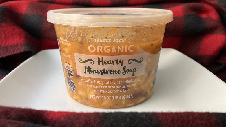 The untold truth about Trader Joe's soups is that not all are created equal. It's not just a matter of taste that drives the quality; even recipes that sound dependably delicious may not measure up to the hype if soup can be considered hype-worthy. We swung by our local TJ's and picked up an armload of the soups sitting on the shelves and snuggling up in the refrigerator section. The retailer sells soup in cans, jars, shelf-stable boxes, and chilled containers, each with its own special set of traits. Regardless of what your favorite soup might be, some of these products are simply better tasting than others. We dipped our spoon into an even dozen and gave them a ranking of best to worst based on our preferences. The work was savory, and the results were slightly surprising.