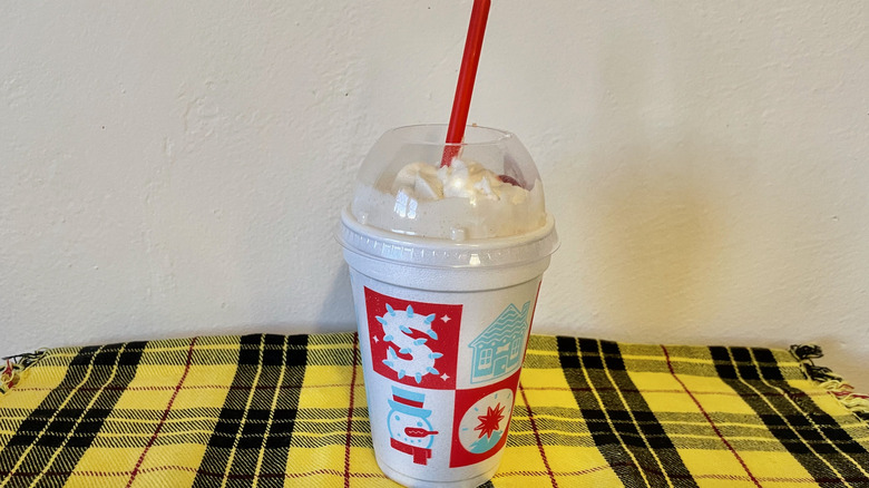 This frosty menu item's name is pretty self-explanatory. It's Sonic's standard vanilla soft serve blended with peanut butter and tiny, chopped-up pieces of bacon. The whole thing is crowned with a mountain of whipped topping and a maraschino cherry. In the menu picture, the whipped topping is showered with bacon crumbles, but the example I tried did not have that garnish. The whole thing is reminiscent of Burger King's infamous Bacon Sundae from around a decade ago, when American bacon obsession seemed to be at its peak. I'm not sure this ice cream stunt will draw as many eyeballs in 2024 as it would have 10 years ago.