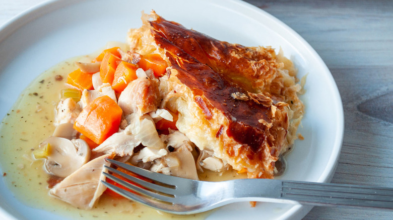 America's love affair with pot pies is older than the country itself: Recipes for them appeared in the first American-written cookbook in 1769, filled with meat, chicken, or even fish. By the '50s, chicken pot pie had become a staple of American homes, and frozen pot pies like Marie Callender's became popular among housewives looking to put a quick and easy meal on the table. These days, home cooks have the option between making pot pies entirely from scratch and taking advantage of shortcuts. Using canned foods like canned chunk chicken, canned veggies, canned gravy, or canned soup makes pot pie a snap to put together, and store-bought crust really seals the deal — literally. If you want to make things easier, you can even opt for a wholly store-bought version of chicken pot pie.