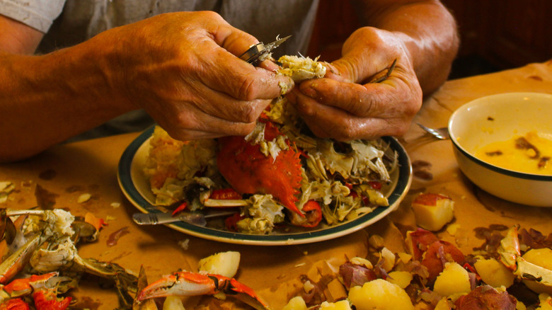 Grabbing a deveined, shelled shrimp from a seafood boil and dipping it in a homemade sauce is a tad messy. But that's the fun of this type of feasting table. However, when grappling with a Dungeness crab in a Cajun boil or shell-on crayfish with a Louisiana-style boil, getting to the meaty parts isn't so easy. The fact that you use your hands to eat does mean that you can dig in with your fingers and pull hard shells apart. A knife and fork aren't going to be of any use though. Have you ever tried to use cutlery to get the meat out of an Alaskan king crab leg?
